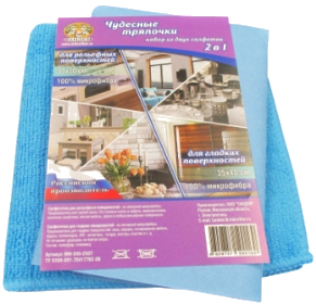 Набор салфеток для комплексной уборки. Две салфетки. Одна салфетка из микрофибры махрового плетения 30*30см. Плотность салфетки 280гр/м. Салфетка предназначена для уборки трудных загрязнений, рифлёных, тканевых поверхностей, впитыванию влаги. Вторая салфетка из не тканного микроволокна 35*40см Плотность салфетки 100гр/м. Салфетка предназначена для уборки любой гладкой поверхности( стёкла, зеркала, пластик, хром, стеклокерамика) Нет разводов и ворса. Придаёт блеск. Проста и приятна в применении. Легко стирается и быстро сохнет. Не боится хлорных отбеливателей. Состав: Полиэфир 80% Полиамид 20% Не гладить! Не кипятить!