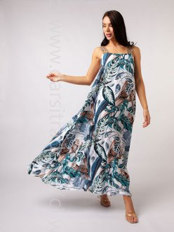 Длинный свободный сарафан А-силуэта, на широких бретелях, с удобными карманами в боковых швах. Верхняя часть сарафана в области груди и спины имеет второй слой ткани. Сарафан комфортный и красивый для прекрасного отдыха как на пляже так и в городе.
