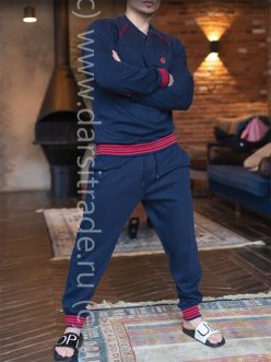 Мужская пижама – стильный фасон, гармоничное сочетание цветов, мягкий хлопковый трикотаж позволяет использовать ее в качестве одежды для отдыха в кругу семьи. Для дополнительного удобства – внутренние карманы в брюках.