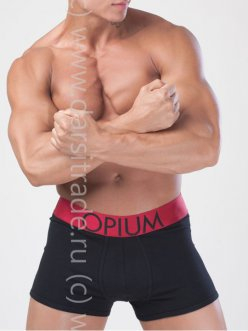Красивые, удобные классические боксеры. Выполнены из хлопковой ткани популярного и любимого мужчинами черного цвета. Широкая шелковистая резинка с логотипом Opium мягко фиксирует трусы на теле. Красный "кардинальский" цвет резинки в сочетании с черным - м