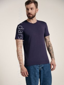 Фуфайка мужская из однотонного трикотажного полотна с коротким рукавом. V- образный вырез горловины окантован бейкой.