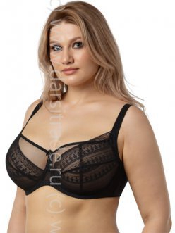 Бюстгальтер - балконет на каркасах с мягкой чашкой. Чашки оригинального конструктивного решения. Внутренняя чашка с вертикальным рельефом и вытачкой создаёт округлую форму. Лёгкая сетчатая структура использованного в ней материала позволяет коже дышать под изделием, обеспечивая наивысший комфорт при носке. Наружная чашка с диагональным членением из ажурного кружева украшает бюстгальтер и создаёт оказывает поддержку. Благодаря этому бюстгальтер надёжно и комфортно фиксирует грудь в нужном положении.