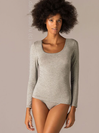Футболка с круглым вырезом и длинным рукавом. Выполнена из модала.