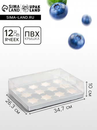 Коробка для 12 капкейков, с прозрачной крышкой, серебро, 34.7×26.3×10 см (арт. 7840813)