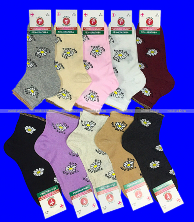 Лечебные женские носки со слабой резинкой крапива + лен ассорти РОМАШКИ арт. Л-100 оптом.