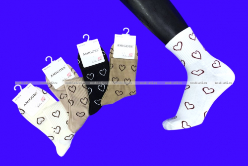 AMIGOBS носки женские цветные с принтом "Сердечки" арт. 9519 оптом.