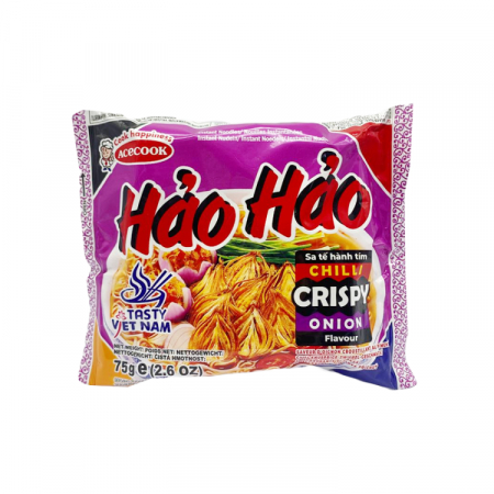 Лапша б/п со вкусом хрустящего лука в соусе чили HAO HAO,75 г (арт. 12076)