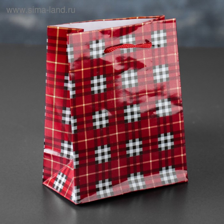 Пакет ламинированный "Красная клетка" 12 х 15 х 5 см 3821349 (арт. 117848907_64464)