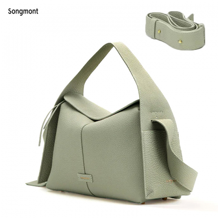 Ручка средней длины и съёмный регулируемый ремень позволяют носить сумку в руке, на плече или через плечо. Минималистичная золотая надпись бренда на боку добавляет утончённости, не перегружая образ.