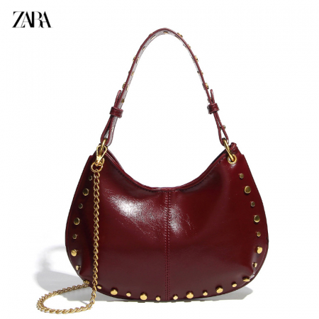 Сумка из глянцевой кожи с заклепками - ХИТ 2025