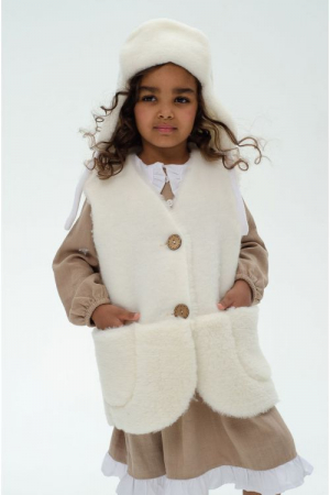 Если дома или в детском саду прохладно, очень выручит меховой жилет из тёплой овечьей шерсти. Дети терпеть не могут, когда на них надевают одежду в несколько слоев, что стесняет движения. Зато легкий жилет совершенно не будет ощущаться и мешать. При этом он надежно защитит малыша от холода и сквозняков., Выбор натуральных тканей для детей самый удачный. Воздействие овечьей шерсти хорошего качества целебно. Оно окутывает сухим комфортным теплом. Тело не перегревается и свободно дышит., Жилет легко снимается, застегиваясь спереди на пуговицы. По бокам есть два кармана, куда малыш спрячет носовой платок и кучу других полезных вещей.