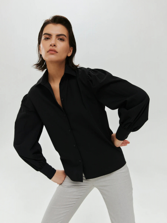Стильная женская рубашка oversize с пышными рукавами на высокой манжете гармонично впишется в сдержанный деловой и романтичный вечерний образ. Свободный крой женской рубашки визуально корректирует недостатки фигуры, акцентируя внимание на женственности форм, а объемные рукава подчеркивают красоту рук. Дополните образ брюками и юбками из наших базовых коллекций.