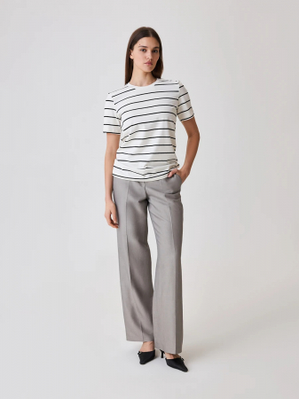 Брюки прямого кроя из однотонного миксового материала на основе вискозы с добавлением натуральных волокон льна гармонично впишутся в деловой женский гардероб. Модель с легкими стрелками подчеркивает достоинства фигуры, а пояс с мягкой резинкой по спинке красиво очерчивает линию талии. Хорошим дополнением к брюкам станут рубашки и блузы из наших базовых коллекций.