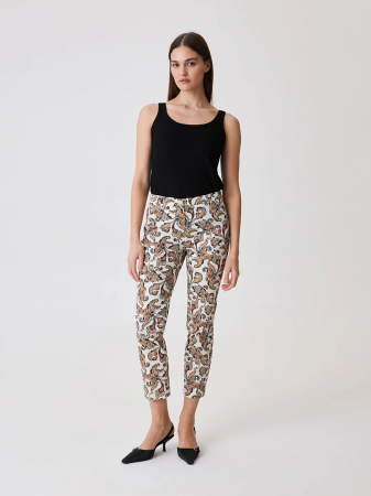 Укороченные зауженные брюки 7/8 с ярким принтом. Заутюженные стрелки и средняя посадка. Выполнены из легкой ткани. Станут ярким акцентом в вашем образе.