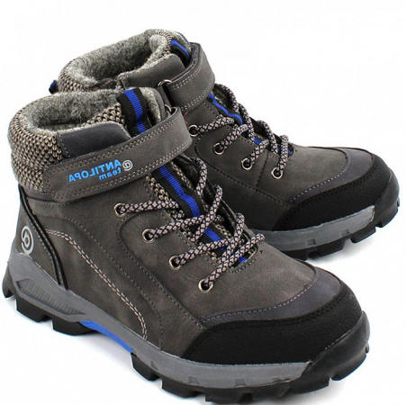 Модель выполнена из искусственного нубука серого цвета и удобно фиксируется на шнуровку и липучку. Подкладка и стелька из утепленного баечного текстиля обеспечат тепло и уют детским ножкам в прохладное время года.