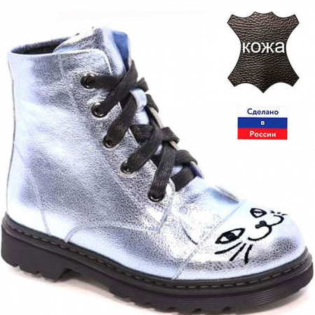 Обувь российского производства, соответствует всем стандартам качества. Модель стилизована под милого зверька – кошку, с ушками, глазками и усиками. Ботинки изготовлены из высококачественной, эластичной натуральной кожи, которая принимает форму стопы и создает оптимальный микроклимат внутри обуви. Подклад и стелька из шерстяной байки, которая сохраняет тепло и обладает «дышащим» эффектом. Застежка-молния позволяет быстро обувать и снимать ботинки. Стопа ребенка надежно защищена благодаря жесткому заднику и жесткой носочной части. Подошва из ТЭП позволяет с легкостью и комфортом преодолевать любые расстояния. Она предотвращает скольжение ног в осенне-весенний период.