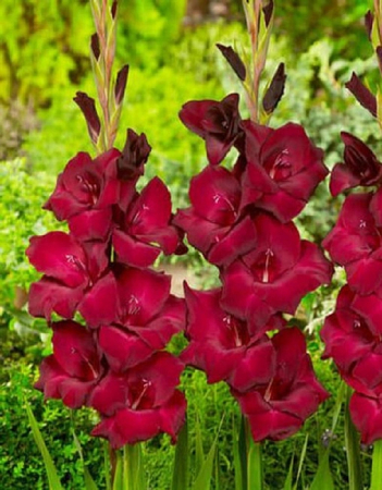 Гладиолус крупноцветковый At Night - цветок насыщенного красного цвета, с красиво сложенными лепестками и красными тычинками, торчащими из центра цветка. К центру цветок немного светлеет. Алые соцветия сладко и тонко пахнут корицей. Высота растения - 80 см..
