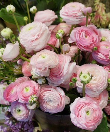 Ранункулюс (или лютик) Пикоти розовый - неприхотливый травянистый многолетник, достигающий высоты 40-45см.Листья тройчато-рассеченные. Махровые цветки, диаметром 5-7см, очень изящные и нежные, по окраске – белоснежные с розовым краем.Цветет в июне – июле.Можно использовать для посадки на клумбах, рабатках, в миксбордерах, рокариях, в балконных и напольных вазонах, а также для срезки и выгонки.