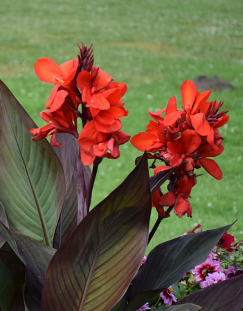 Цветки обладают ярким насыщенным красным цветом. Стебли плотные, не сильно высокие. Листки декоративные, овальной формы с заострёнными концами. Цвет стеблей и листков достаточно необычный – светло-коричневый. Цветки крупные с диаметром до 12,5 см. Растение достигает высоты 50 см.