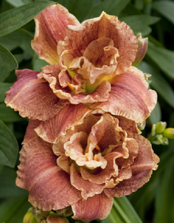 Лилейник Хеппи Хулиган. Редкий сорт с крапом на лепестках! Махровый оранжево-желтый цветок с красным напылением — крапом. Мечевидно изогнутые прикорневые листья образуют куст, по форме напоминающий струи фонтана. Листва декоративна в течение всего периода вегетации. Сорт очень зимостоек и не требует пристального ухода.