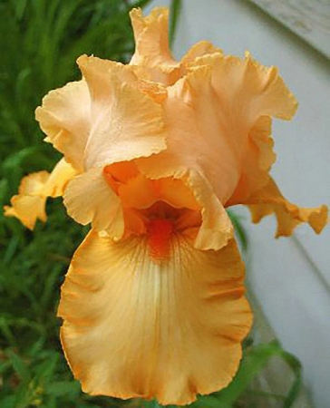 Ирис Априкот Силк – корневищное растение высотой 80см. Мечевидные листья с восковым налетом собраны в вееровидные пучки. Цветки оранжево-абрикосовые, размером 10-15см, источают сладковатый тонкий аромат. Цветет с мая по июнь. Используется для всех типов ландшафтного дизайна (украшение клумб, бордюров, рабаток). Прекрасно смотрится в срезке.