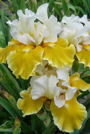 Ирис Эхо де Франс – корневищное растение высотой 90см. Мечевидные листья с восковым налетом собраны в вееровидные пучки. Верхние лепестки цветков белоснежные, нижние – лимонно-желтые. Цветки слегка гофрированные, размером 10-15см, источают сладковатый тонкий аромат. Цветет с мая по июнь. Используется для всех типов ландшафтного дизайна (украшение клумб, бордюров, рабаток). Прекрасно смотрится в срезке.