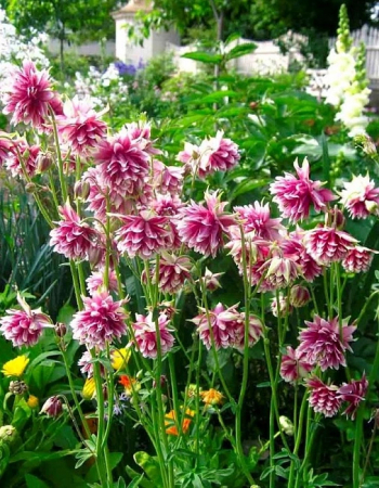 Аквилегия гибридная используется в ландшафтном дизайне при декорировании садовых участков, бордюрных зон, рокариев, робаток и клумбовых насаждений. Подходит как для одиночных, так и групповых посадок.