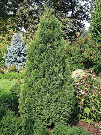 Для посадки туи выбирают солнечные места. Хотя растение переносит и тень, однако при этом растение хуже развивается и крона становится менее привлекательной. Почва подходит легкая (торфянистые, сухие и глинистые супеси). При высадке в более тяжелый грунт на дне посадочной ямы необходим дренажный слой не менее 15 см толщиной. Посадочная яма выкапывается под размер кома растения, глубиной от 60 до 80 см. Почвенную смесь можно подготовить заранее. Оптимально подойдет смесь, состоящая из песка, торфа и листовой (дерновой) земли в соотношении 1:1:2. Уровень кислотности для туй желателен в пределах 4,5-6 pH см.