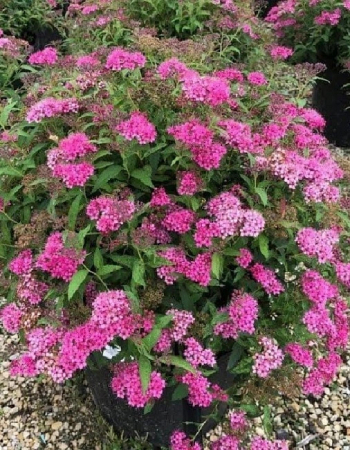 Цветки ярко-розовые с фиолетовым оттенком или ярко-малиновые, собраны в щитковидные крупные соцветия до 15 см в диаметре.Цветение:июнь-сентябрь
