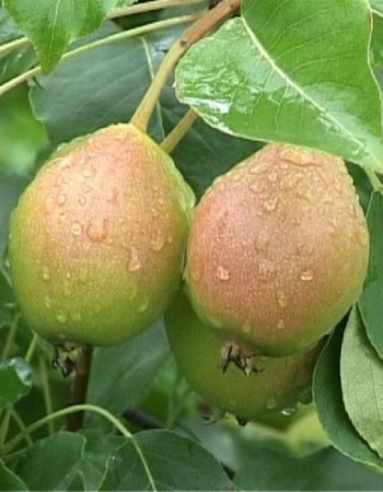 Груши Веселинка маленькие, широкие, в виде обычной груши. Средняя масса 50-60 г. Верхняя часть фрукта гладенькая. Кожура нежная, гладенькая, на ощупь как будто покрытая маслом. Окрашивание зеленоватое, румянец буро-красной расцветки покрывает плод на две третьих части. Вкус с выраженной сладостью, аромат приятный, насыщенный, характерный для груш, выращенных на юге.