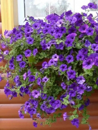 Ампельное растение Серия Опера Суприм представляет собой петунии для подвесных корзин крупного размера (диаметр взрослого растения составляет 90-120 см). Диаметр цветов 5-6 см. Растения сильно ветвятся и образуют не свисающую “бороду”, а шаровидно-каплевидную форму. Растения выглядят очень ажурно и легко, напоминая облако.