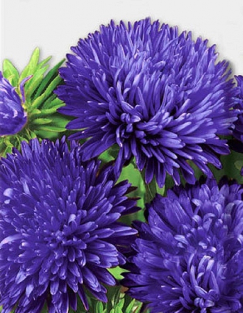Серия роскошных гигантских астр. Привлекательный обильно цветущий куст с многочисленными соцветиями высотой до 100 см. Соцветия густомахровые, сине-фиолетовой окраски, диаметром 12-14 см, до 12 штук на растении. Растение предпочитает открытые солнечные места. Цветет обильно с июля по октябрь. Отличаются высокой устойчивостью к болезням и неблагоприятным погодным условиям, великолепными срезочными свойствами, до двух недель стоят в воде, сохраняя декоративность. Прекрасно подойдут для оформления цветников и рабаток.