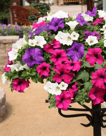 Для кашпо, корзин, балконов. Очаровательная смесь однолетников с многочисленными цветками разнообразной окраски и ниспадающими, сильноветвящимися побегами, длиной до 50 см. Цветы воронковидные, крупные, диаметром до 5 см. Обильно цветет с июня по октябрь. Растение светолюбивое, засухоустойчивое. Отлично подходит для подвесных кашпо и балконных ящиков. Хорошо переносит пересадку в цветущем состоянии.
