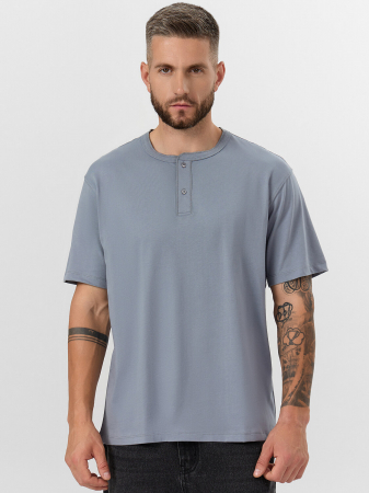 Отрезная воротник-стойка из рибаны. Боковой срез планки и верхний срез воротника-стойки обработан на оверлоке. Рукава короткие, втачные.По плечевым швам и окату рукава отделочные строчки. Нижние срезы рукавов и изделия обработаны швом вподгибку на плоскошовной машине.