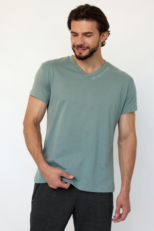 Удобная и комфортная футболка полуприлегающего кроя. Футболка с V – образным вырезом горловины и коротким рукавом