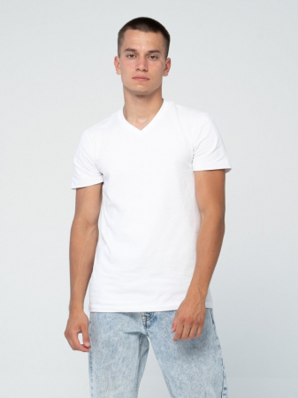 Мужская трикотажная футболка полуприлегающего силуэта, рукав короткий, v- образный вырез. Футболка из натурального хлопка с добавлением лайкры, классического кроя. Футболка не стесняет движений, идеально ложится по фигуре.