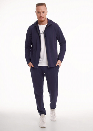 Брюки мужские на манжете из трикотажного полотна с регулируемой талией. Функциональность модели придают боковые карманы,а интересным акцентом в изделии является имиджевый принт и задний рез. Брюки эргономичные и удобные.