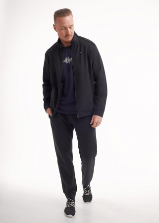 Брюки мужские на манжете из трикотажного полотна с регулируемой талией. Функциональность модели придают боковые карманы,а интересным акцентом в изделии является имиджевый принт и задний рез. Брюки эргономичные и удобные.