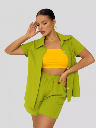 Легкая дышащая ткань костюма двойки позволит гулять с комфортом даже в самую жаркую погоду. Комплект женский 2-х предметный в свободном стиле оверсайз oversize состоит из рубашки блузки с пуговицами и шорт на резинке свободного кроя без подкладки не просвечивает и выполнен из качественного дышащего материала. Легкий и удобный летний костюм женский - рубашка с шортами. Костюм модный классический идеально подойдет не только для прогулок, но и на день рождения на свадьбу, встречу в кафе или для прогулки с друзьями на пляж или море в путешествие или отпуск. Женская рубашка и шорты имеют прямой свободный крой. Идеально подходят на высоких и не высоких девушек для беременных и кормящих. Рубашку можно завязывать узлом. Так же костюм идеален для дома как пижама он домашний уютный.