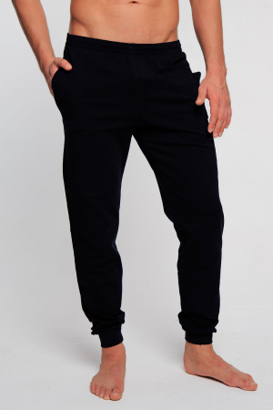 Мужские спортивные брюки, полуприлегающего силуэта, с манжетами снизу. На брюках имеются два боковых кармана. Рост модели 187 см.