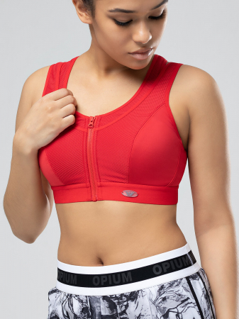 Женский тренировочный топ из дышащей ткани. Удобная застежка спереди – молния со стоппером, предотвращающим самопроизвольное расстёгивание. Оригинальная конструкция топа в сочетании с плотными чашками обеспечивает комфортную посадку и поддержку груди во время интенсивных тренировок. Это базовая модель, которую можно сочетать с большинством леггинсов и маек из коллекции Opium Fitness.