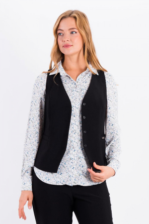 Классический жилет с V-образным вырезом и треугольными рельефами рисует женственный силуэт и зрительно стройнит. Удобные карманы с листочками позволят иметь необходимые мелочи под рукой. Мягкая подкладочная ткань приятна к телу.
