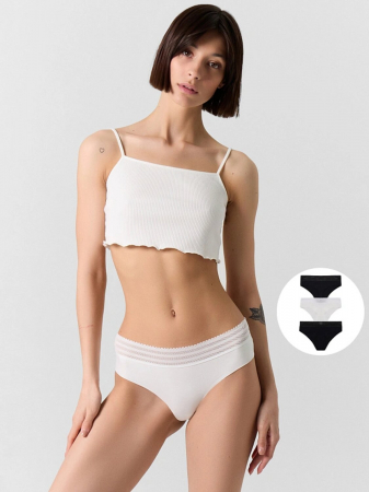 Трусы женские классического силуэта со средней посадкой из интерлока. Передняя деталь цельная. Ластовица цельная на подкладке из кулирного полотна, отлетная по переднему краю, обтачная по боковым срезам