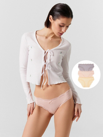 Набор женских трусиков-слипов средней посадки с кружевными вставками станут идеальным выбором для вашего гардероба. Модели выполнены из натурального приятного к телу хлопка с небольшим содержанием эластичных волокон. Такое сочетание материалов обеспечивает комфортную посадку на фигуре и свободу движений. Кружевные вставки добавляют изящности и женственности, делая эти трусики не только удобными, но и стильными. Этот набор станет отличным дополнением коллекции нижнего белья, даря вам комфорт и уверенность каждый день.