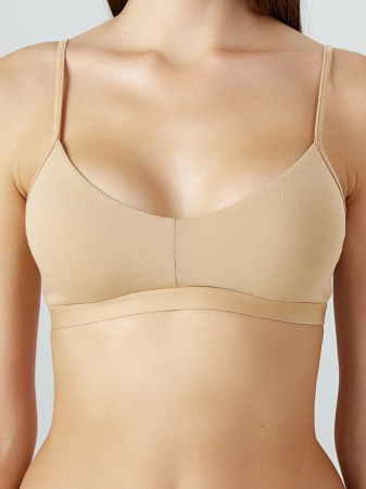 Бюстье женское из кулирного полотна, на подкладке. Перед со средним швов, спинка цельная. Верхняя и нижняя чашки с подформовкой. Верхний срез чашки обтачан подкладкой с эластичной тесьмой 6 мм внутри (жилка Wt4-6 , девсел 13460W).