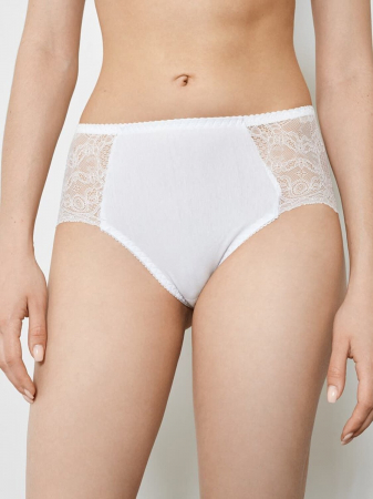 Очаровательные трусики-макси без боковых швов в базовой расцветке. Передняя часть и небольшой треугольник сзади выполнены из великолепного хлопкового трикотажа, боковые части и сидение – из эластичного кружева. Завышенная посадка, расширенные боковые части и закрытые ягодицы гарантируют неповторимый комфорт. По верхнему срезу и ножкам обработаны тесьмой. Модель имеет широкий размерный ряд!