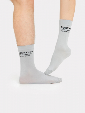 рис.2718 Носки высокие, классические с тонким, гладким бортом с рисунком в виде надписи "Сушиться, (гл) выпивать сухое вино"