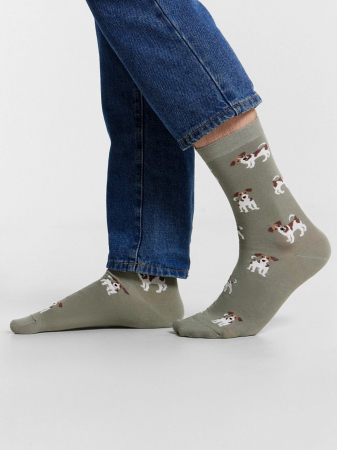 рис.1909 Мужской классический высокий носок с узким бортом и рисунком в виде Джек Расселов.