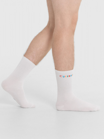 Носки мужские классические высокие с плотным бортом и рисунком в виде надписи "СУЕТОЛОГ" - отличная возможность внести разнообразие и поднять настроение в праздники. Длинные мужские носки с принтом изготовлены из гребенного хлопка - пряжи высочайшего качества, мягкой, тонкой, но прочной. Натуральные волокна отлично пропускают воздух, позволяя коже дышать, и впитывают влагу, дарят ощущение комфорта в течение всего дня. Благодаря небольшому количеству эластана в составе, носки хорошо облегают стопу и сохраняют форму даже после множества стирок. Мягкая эластичная резинка надежно удерживает носки на ноге, но не давит. Пятка и мысок дополнительно усилены, что гарантирует защиту от протирания и повышенную износостойкость - мужские носки с принтом прослужат долго. Купить мужские носки недорого можно у нас на сайте или в магазине Mark Formelle. Отличный выбор на каждый день. Рекомендуем!