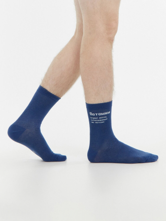 рис.2501 Мужской носок классический, высокий с рисунком в виде надписи.